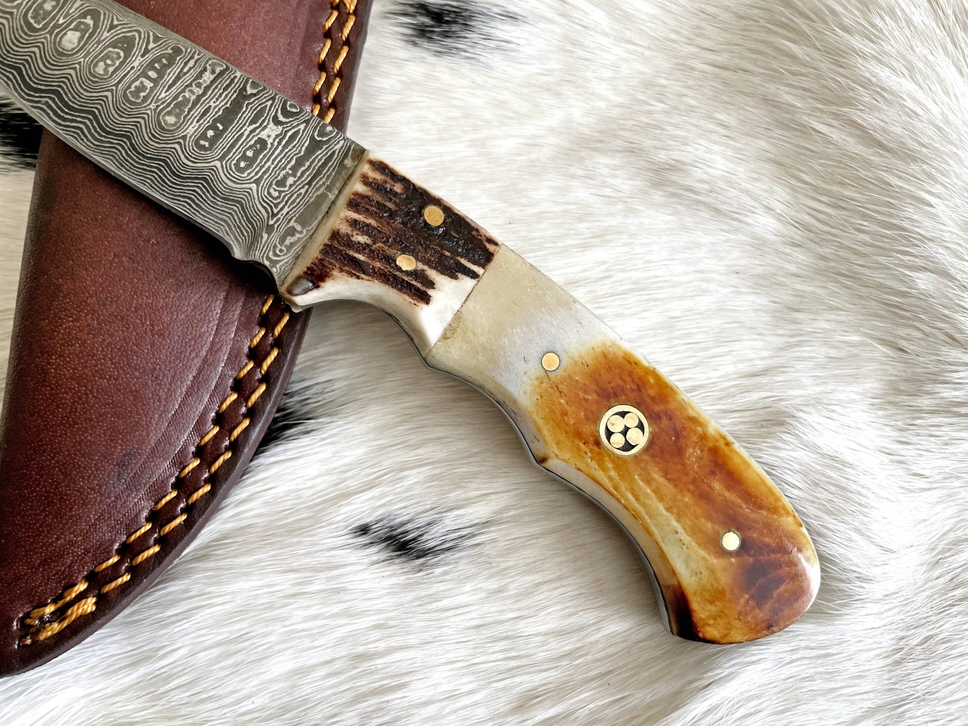 Damascus Steel Burnt bone & Walnut Hunting Knife